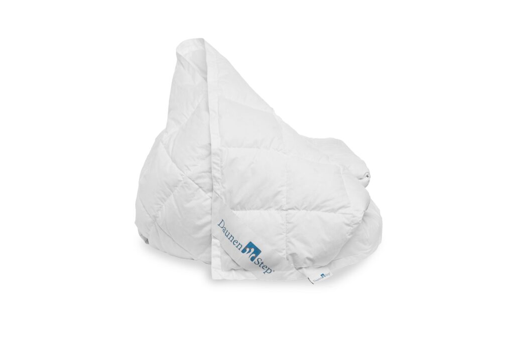 Uno degli aspetti singolari dei piumoni DaueneStep è la trapuntatura a quadri fissi che mantiene il calore uguale su tutta la superficie del capo, mentre lo speciale bordo piatto con asole è costruito per far sì che due piumini possano essere uniti insieme.
